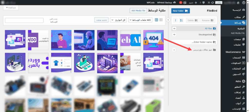 بهذه الطريقة أستطيع تنظيم مكتبة الوسائط بالشكل الذي أريده، مما يساعدني كثيرًا في إدارة الموقع ويسرع من الوصول إلى الملفات المطلوبة.