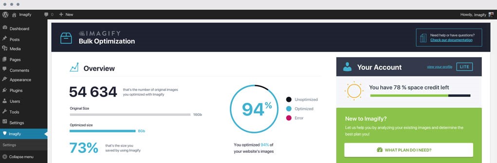 Imagify هي إضافة فعّالة وهامّة لنظام WordPress، تقوم بتسريع الموقع المُضافة إليه عن طريق عمل optimization للصور التي يتم إضافتها، ما يخفف من أحجامها بشكلٍ كبير.