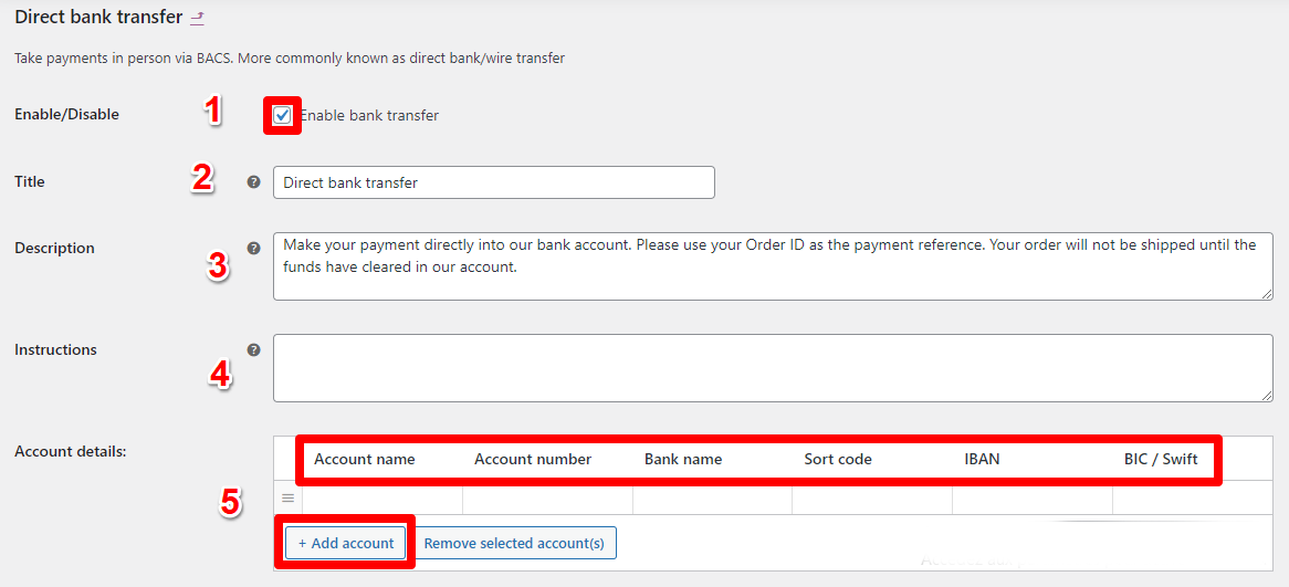 2. ضع اسم أو عنوان لخيار التحويلات البنكية.