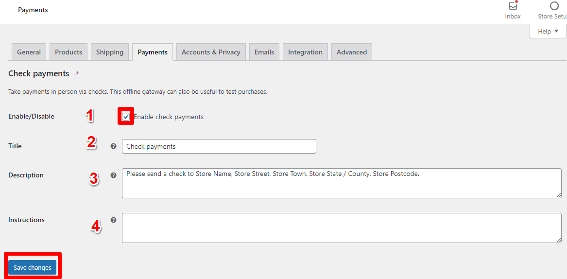 ثانيًا - الدفع عن طريق صك بنكي Check Payments
