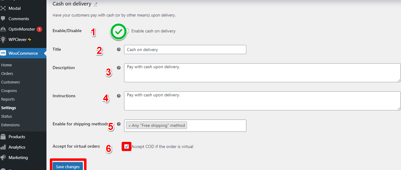 7. ثم احفظ الاعدادات بالنقر على Save Changes.