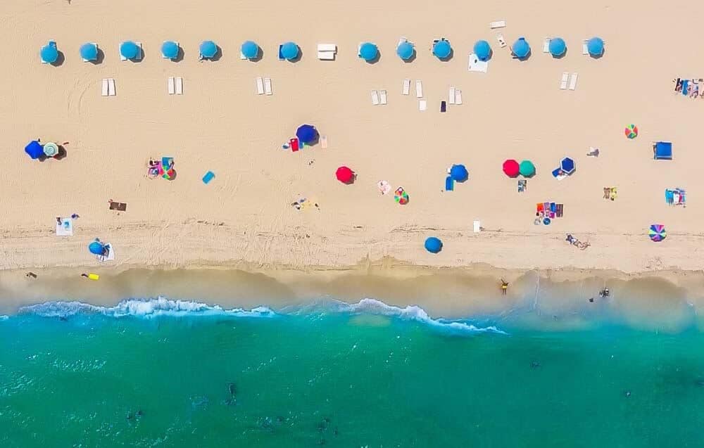 يعاني المبتدئون من المصورين من زيادة تشبع لقطاتهم بالألوان، ويواجهون مشاكل في استخدام الألوان الزاهية. ففي الصورة أعلاه تقوم المناشف والمظلات بجذب عينيك إلى الحشد على الشاطئ. ينجح الأمر باستمرار لأن الألوان (على الرغم من كثافتها) صغيرة بما يكفي بحيث لا يصعب عرضها. أمّا إذا كنت أقرب إلى الهدف، فاملأ الإطار للحد من نطاق الألوان في اللقطة.