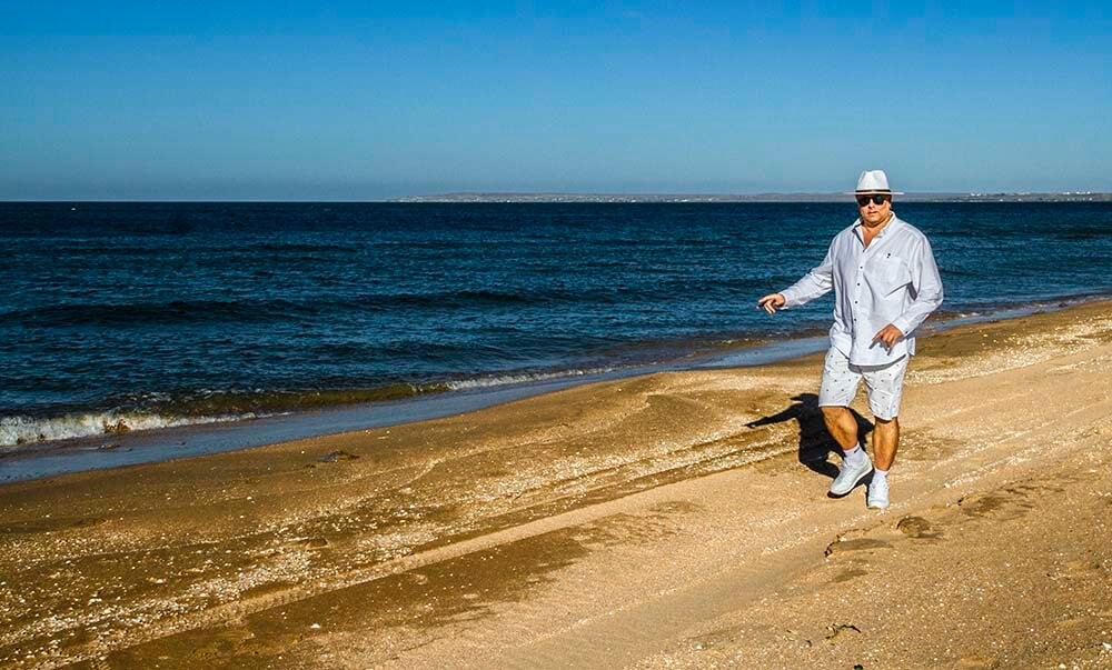 في هذا المثال، يتوازن النسيج الذي تم إنشاؤه بواسطة الموجات على الجانب الأيسر من اللقطة مع وجود الرجل على الجانب الأيمن من اللقطة. ويساعد وضعه على اليمين في إعطاء الإحساس بأنه يمكنه الاستمرار في السير نحو اليسار، مما يخلق لقطة أكثر ديناميكية.