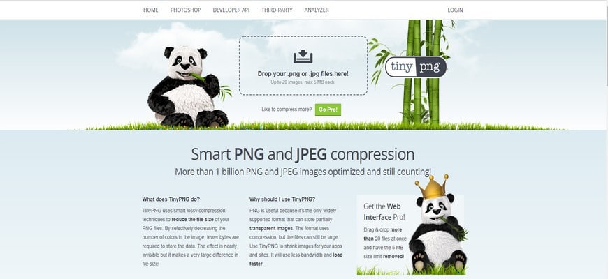 يتميز إصدار TinyPNG المدفوع بكم هائل من المميزات ضمن نطاق ضغط الصور، وهي: