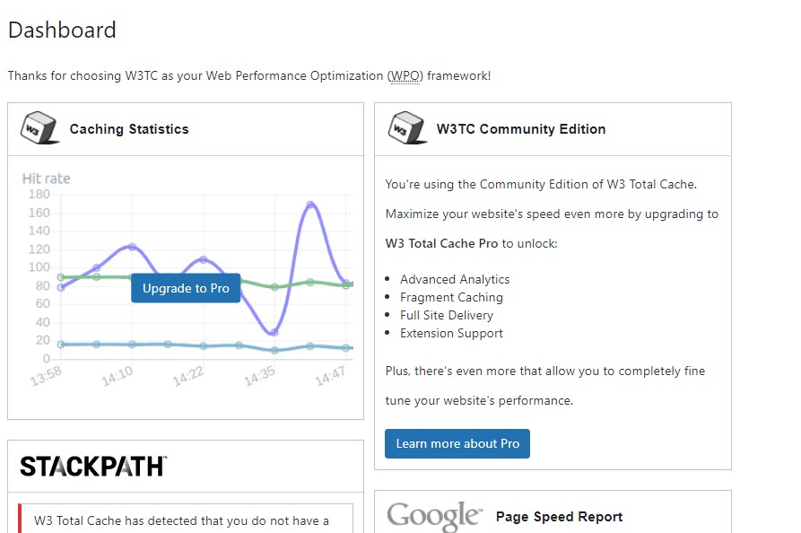 إضافة W3 Total Cache هي إحدى أفضل إضافات التخزين المؤقت التي تسمح بتحسين سرعة موقع الووردبريس وأكثرها شيوعًا، حيث توفر جميع مزايا التخزين المؤقت التي يمكن أن تحتاج إليها في موقعك الإلكتروني، بما في ذلك التخزين المؤقت للصفحة والتخزين المؤقت للكائن وCDN وضغط gzip الذي يسمح بتصغير أحجام الملفات وبالتالي إرسالها بسرعة أكبر.
