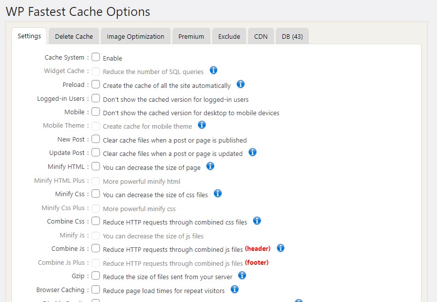 يعتبر المكون الإضافي WP Fastest Cache المحسن للأداء اعتمادًا على التخزين المؤقت ومزايا أخرى واحدًا من أكثر الإضافات في هذا المجال شيوعًا وقوة، حيث يأتي مع مجموعة ميزات وخيارات مفيدة ورائعة يمكن التحكم بتفعيلها أو عدم تفعيلها من خلال مربعات الاختيار بسهولة كبيرة.