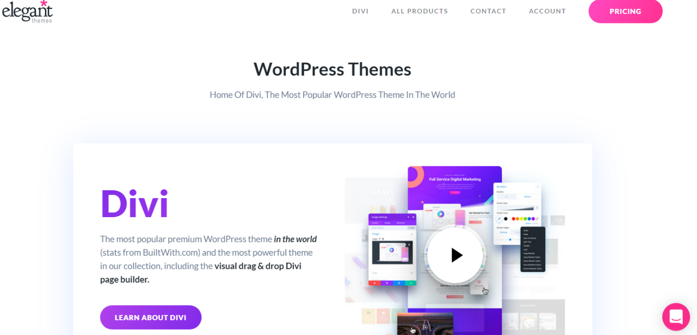 لدى هذه الشركة أشهر قالب على مستوى العالم وهو قالب “Divi” الذي تم تطويره باستمرار منذ 2013 حتى الآن، ليصبح القالب الأفضل الذي يمكن من خلاله إنشاء تصاميم رائعة خاصة بموقعك دون كتابة أي كود برمجي، وذلك بواسطة خاصية سحب وإفلات العناصر الجاهزة الموجودة في القالب.