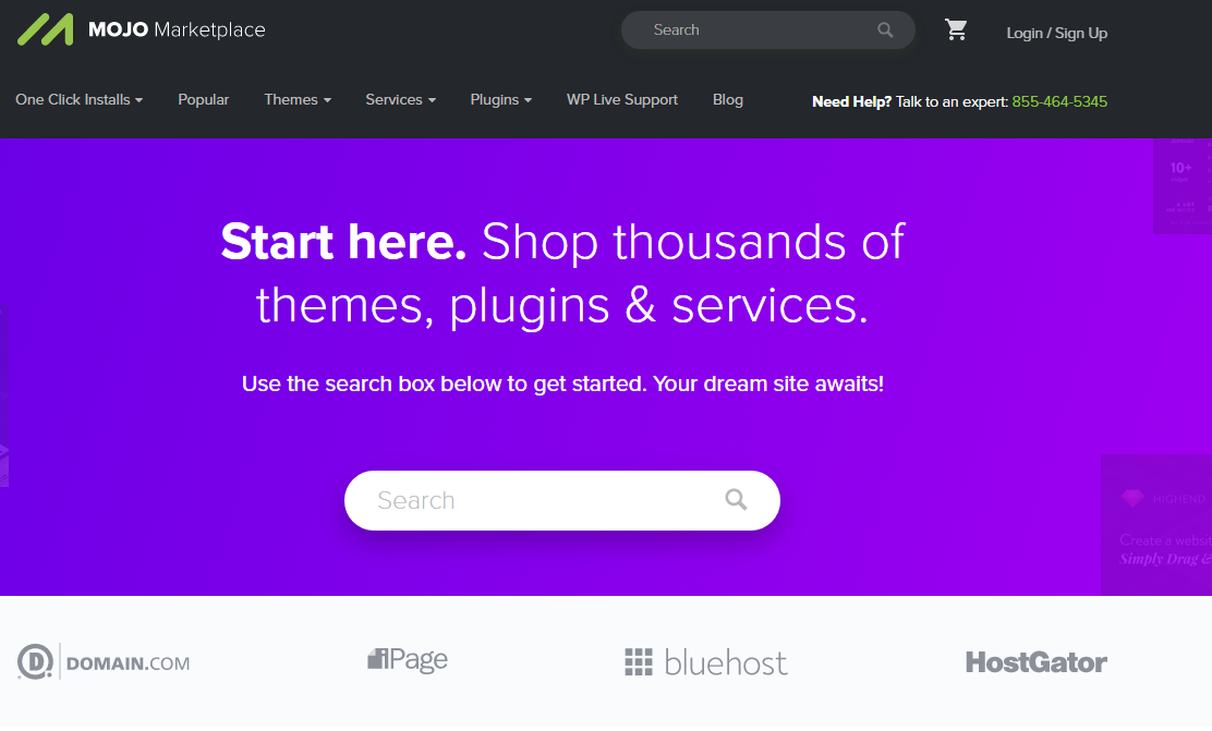موقع MOJO Marketplace  هو سوق كبير لقوالب الووردبريس والبرمجيات الإضافية والخدمات. في وقت كتابة هذا المقال، كان لديهم أكثر من 8000 عنصر معروض للبيع، بما في ذلك 743 قالب رائع للووردبريس. ستجد أيضاً لديهم العديد من خدمات الاستضافة التي تقدمها أفضل الشركات مثل بلوهوست.