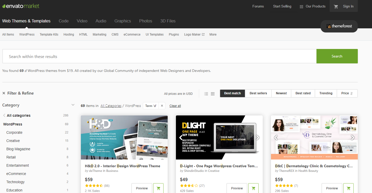 تحتوي TemplateMonster على أكثر من 2100 قالب للوردبريس. ولحسن الحظ، لن يتعين عليك قضاء ساعات في البحث عن القالب الذي يعجبك لأنه توجد عوامل تصفية وخيارات بحث جيدة جداً.