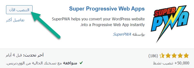 • ثم أخيراً نشط المكون الإضافي لتطبيق الويب التقدمي الفائق Super Progressive Web App Plugin من القائمة.