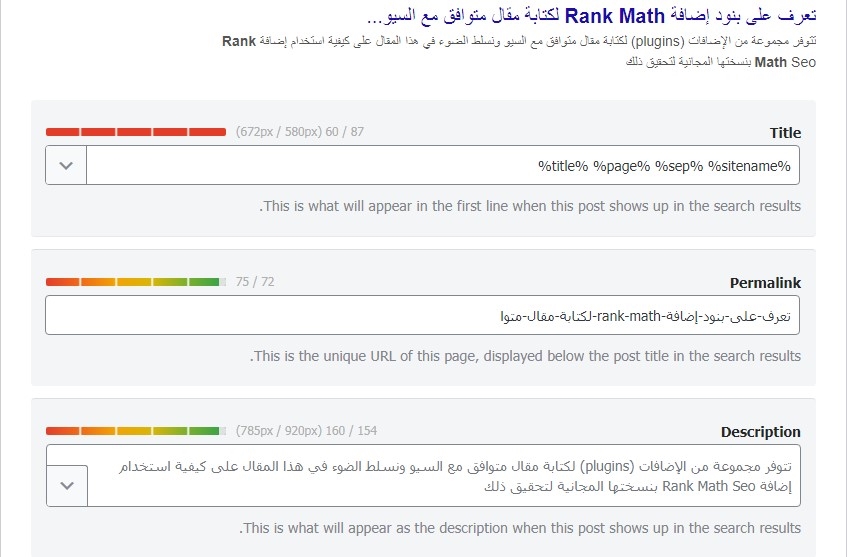 إضافة Rank Math ومعايير السيو الخاصة بالمقال