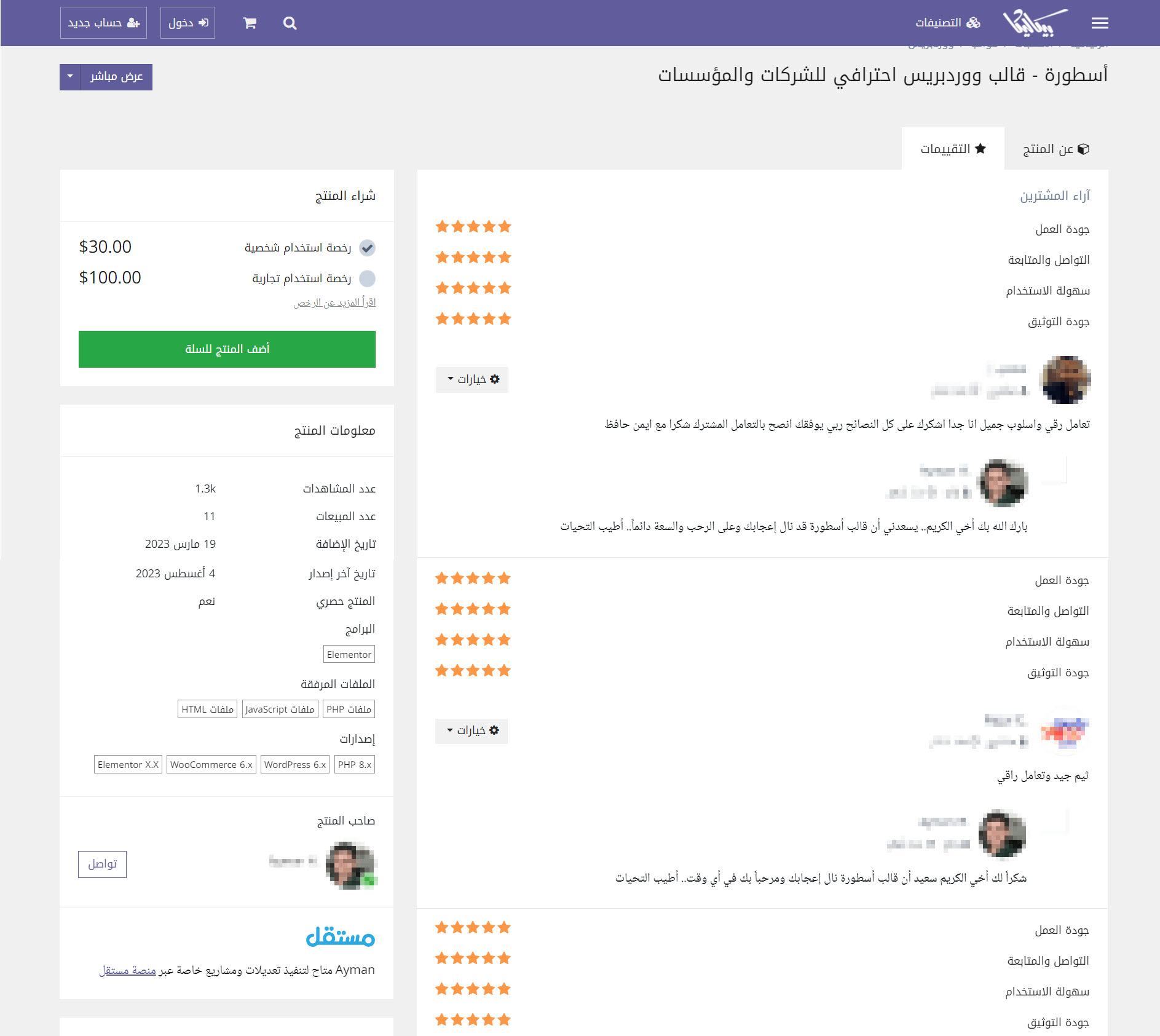 يمكنك التحقق من مراجعات وتقييمات القالب من خلال صفحة القالب، حيث تظهر لك جميع تقييمات وآراء المستخدمين الذين قاموا بتجربة القالب وتقييمه، فإذا كانت التقييمات والمراجعات إيجابية فهذا يعني أن القالب آمن ويمكن استخدامه.