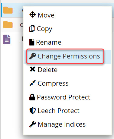 عادة ما يكون بالإمكان تعديل أذونات الملفات من خلال لوحة التحكم بالاستضافة عبر استخدام أداة مدير الملفات (File Manager)، ففي cPanel على سبيل المثال، بعد فتح مدير الملفات، يمكنك النقر بزر الفأرة الأيمن على الملف أو المجلد، ثم اختيار (Change Permissions) لتغيير الأذونات.