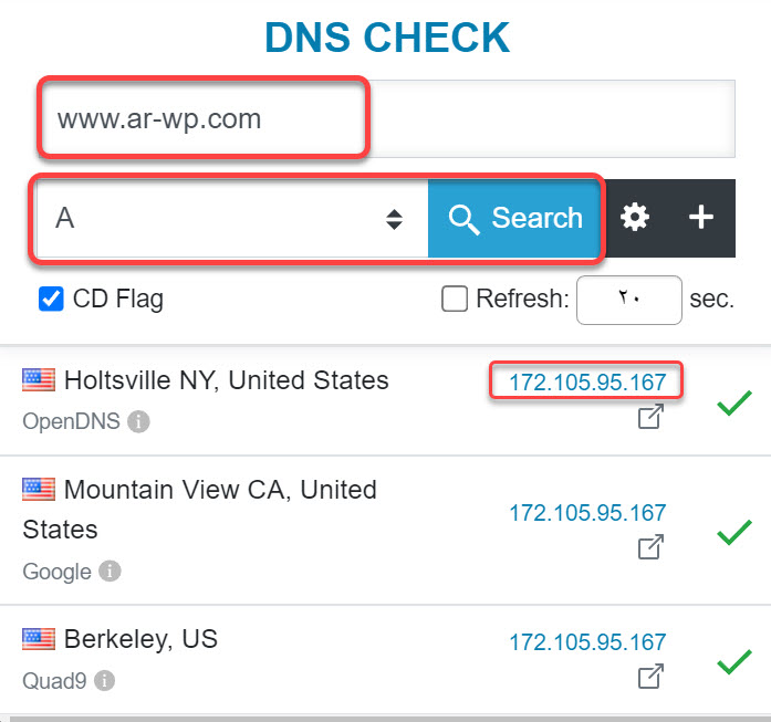 كيفية معرفة الـ IP الذي يشير إليه اسم الدومين باستخدام DNS Checker