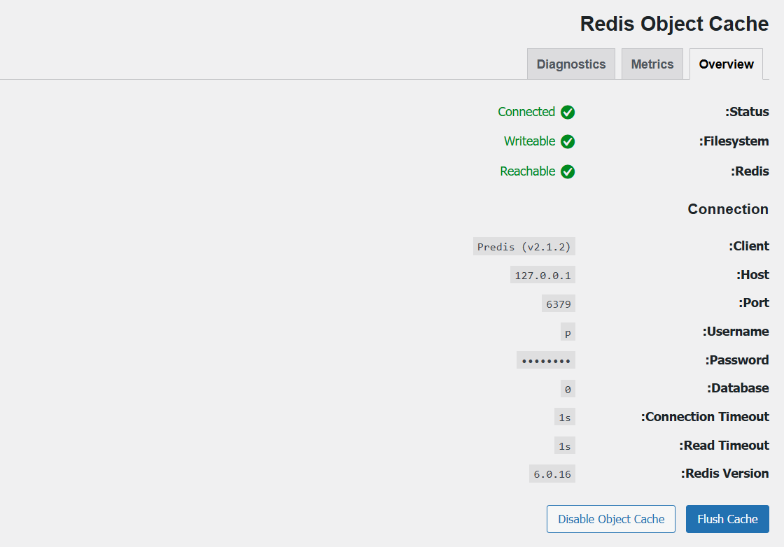 تنصيب إضافة Redis Object Cache والاتصال بـ Redis