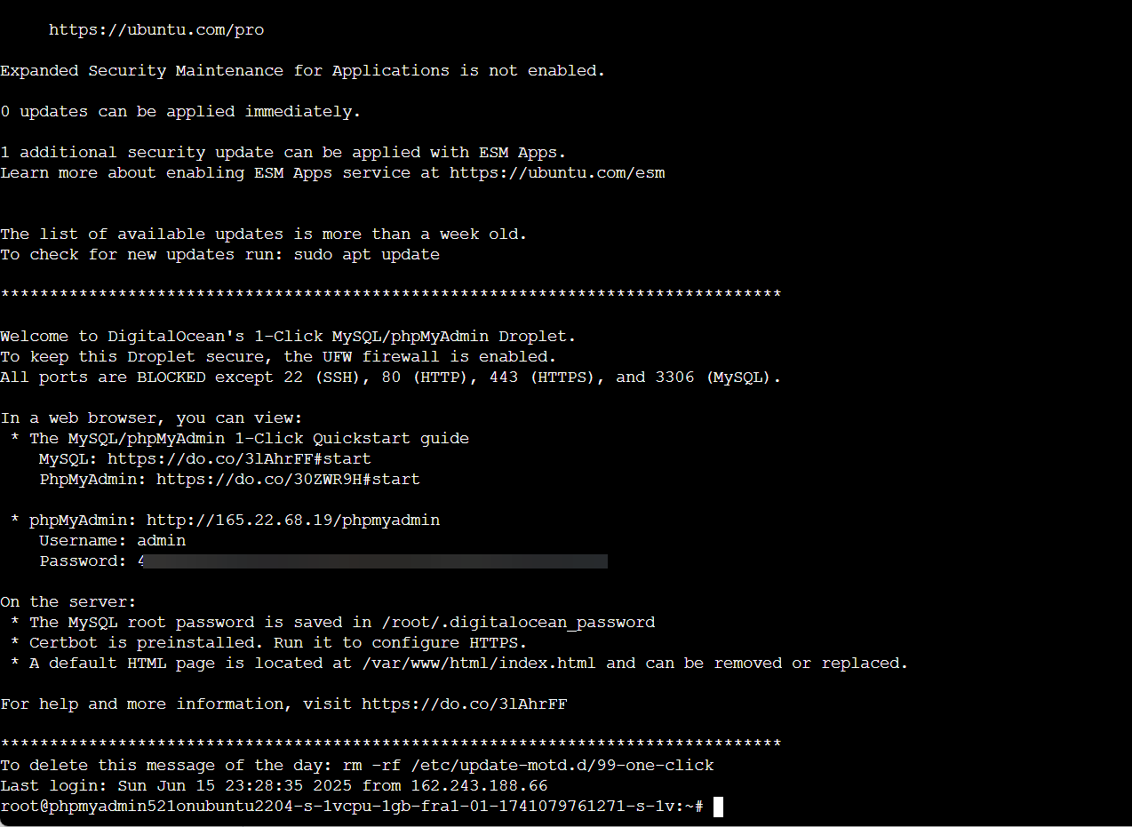 ثم أدخلت في السطر الذي بعده السطر التالي، حيث يجب أن تدخل مكان password كلمة مرور صعبة التخمين.