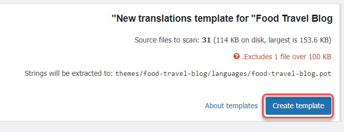 سيُطلَب منك تأكيد إنشاء ملف POT للقالب، وللتأكيد عليك فقط أن تنقر على زر (Create template).