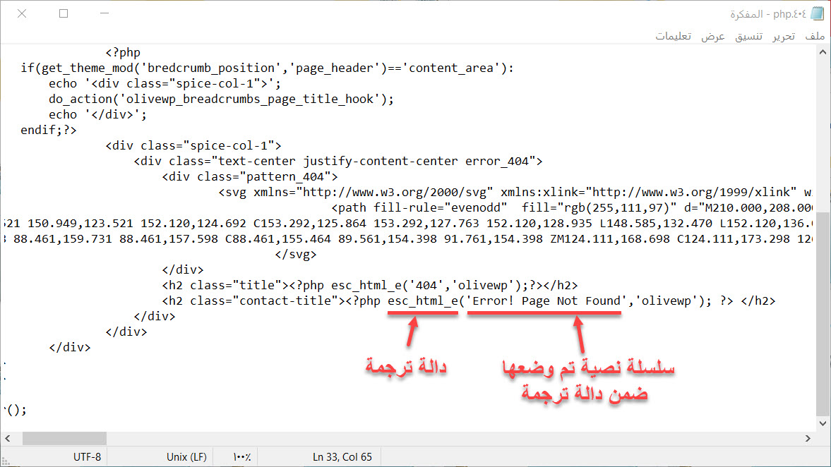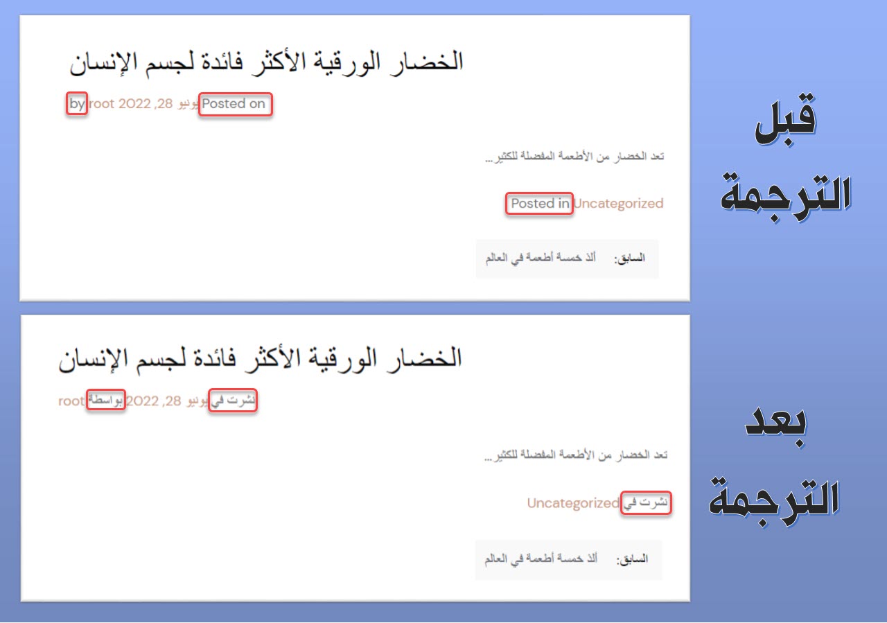 - ترجمة جمل أو عبارات قالب الووردبريس إلى اللغة العربية.