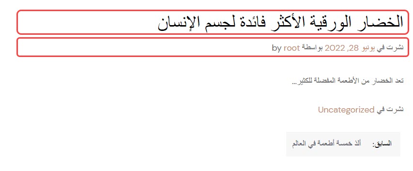 بعد أن عرفنا الخاصيتين المطبقتين على العنصرين اللتين جعلتهما يتجهان إلى اليسار، قمنا بحذفهما من ملفات القالب، ثم أعدنا فتح إحدى مقالات الموقع، فتم تغيير اتجاه العنصرين ليصبح من اليمين إلى اليسار.