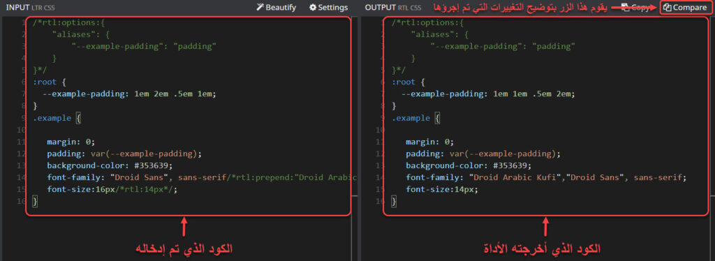 جدير بالذكر أن جميع الأدوات التي تساعد على إنشاء ملف rtl.css من ملف style.css يمكن أن لا تفعل دعمًا كاملًا للاتجاه RTL، ومن المحتمل أن تحتاج إلى إجراء بعض التغييرات على الكود يدويًا، أو إضافة قواعد CSS جديدة إلى ملف rtl.css، أو غير ذلك.