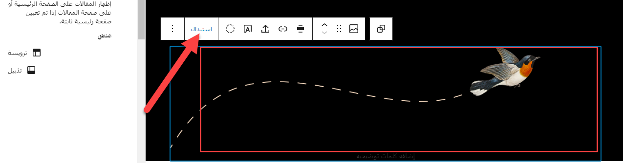 كذلك الصورة التي توجد في خلفية الترويسة، بإمكانك النقر عليها، واستبدالها سواء بصورة أخرى، أو حذفها بالكامل: