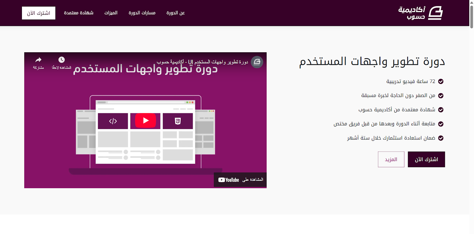 الجدير بالذكر أن كافة هذه اللغات وكل هذه المفاهيم التي يؤدي إتقانها إلى تعلم تطوير الواجهات الأمامية، مشروحة بشكل عملي ونظري في دورة تطوير واجهات المستخدم من حسوب، لذلك ينصح بها إذا أردت احتراف هذا المسار.