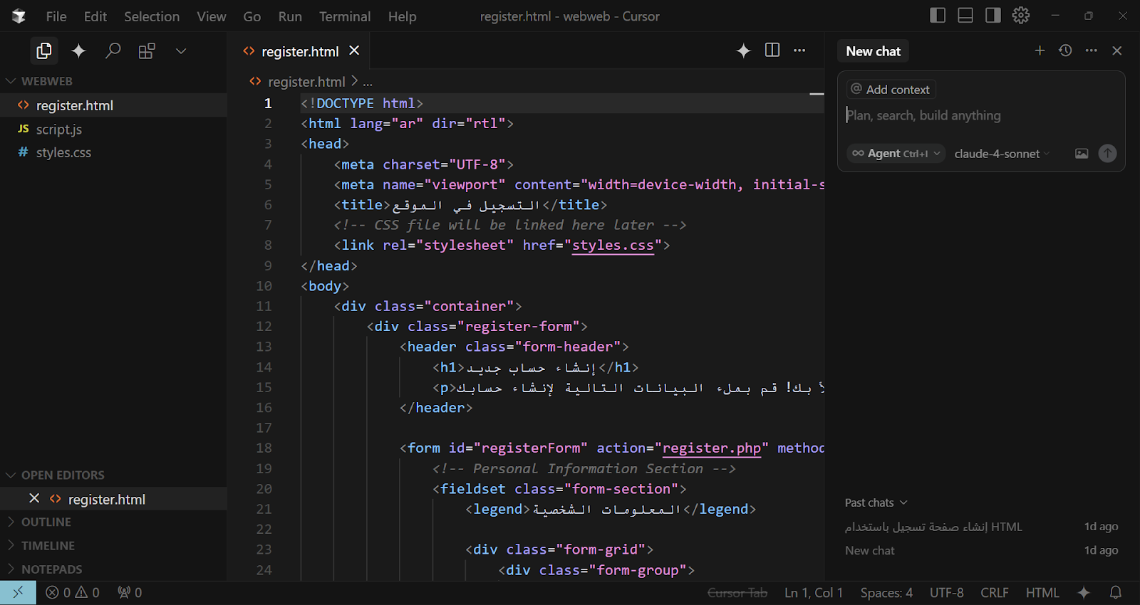 - HTML: هي لغة ترميز تعد الهيكلة الأساسية لصفحات الويب. تُستخدم لإنشاء العناصر المختلفة للصفحة مثل العناوين، والفقرات، والصور، والروابط.