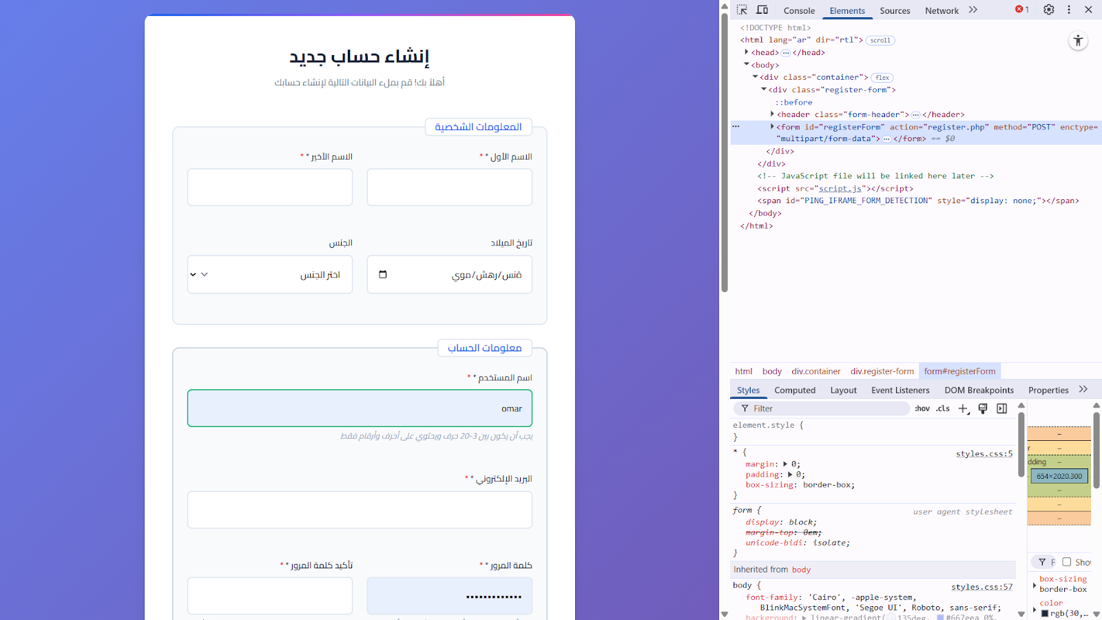 لتتضح الصورة لديك أكثر عن المهام الدقيقة لهذه اللغات، تخيل أنك تبني صفحة ويب لإنشاء حساب في أحد التطبيقات. عند استخدام لغة HTML فقط لبناء الصفحة فإنك ستجد عند فتحها باستخدام المتصفح الهيكل الأساسي الذي كتبته دون أي تنسيقات.