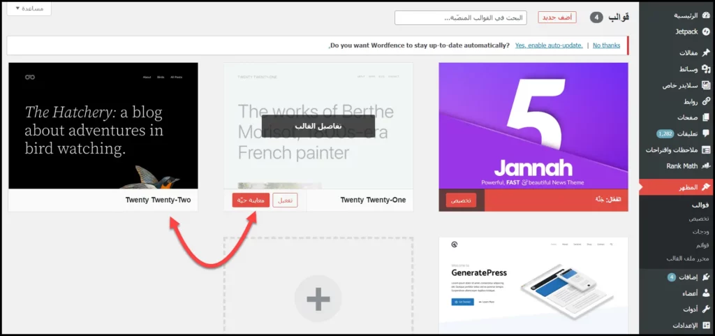 تفعيل قالب ووردبريس افتراضي للتجربة