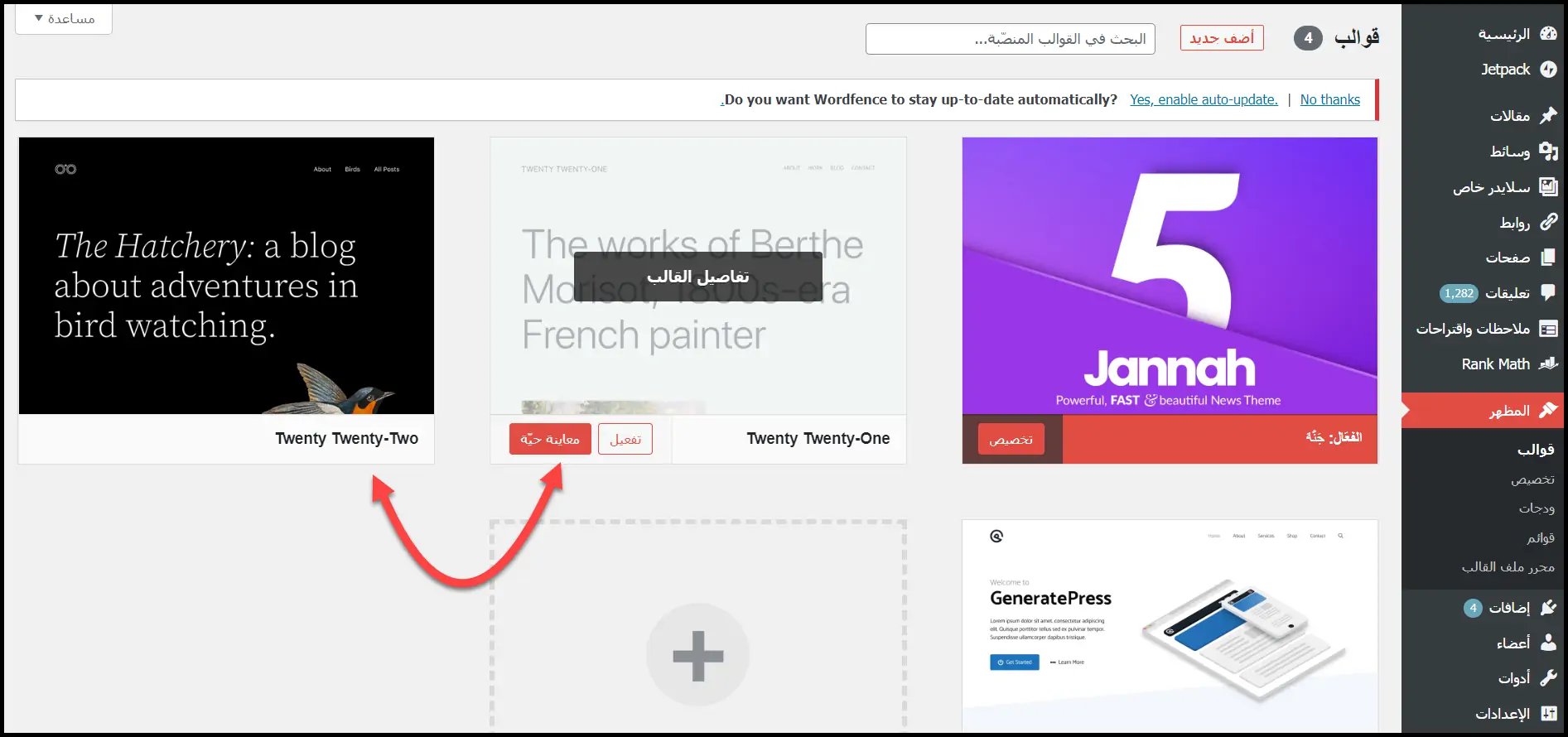 لمنع حدوث مشاكل بسبب التحديثات، اقرأ الموضوع التالي: امنع أخطاء تحديث القوالب والإضافات قبل أن تحدث.