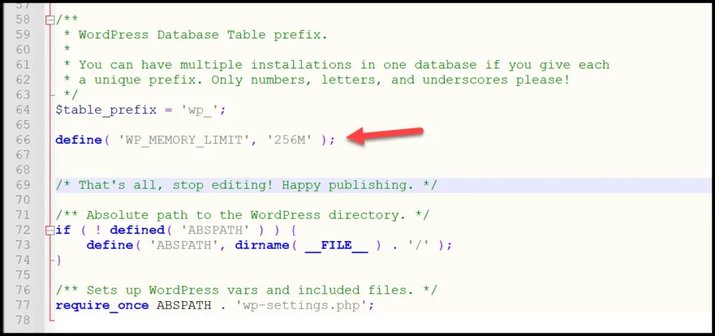 في حالة وجدت الحد أقل من 256 ميجا بايت، فأكتب الكود التالي في ملف wp-config.php لزيادة حجم الذاكرة.