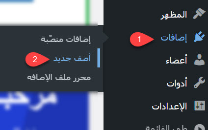 بعد تنصيب الووردبريس على الاستضافة، يجب تنصيب إضافة الووكومرس من أجل بدء إنشاء المتجر الإلكتروني. لفعل ذلك، قم بالدخول إلى لوحة تحكم ووردبريس الخاصة بك، ثم من تبويب (إضافات) في القائمة الجانبية، اختر (أضف جديدًا).