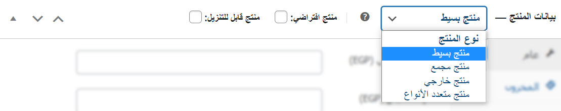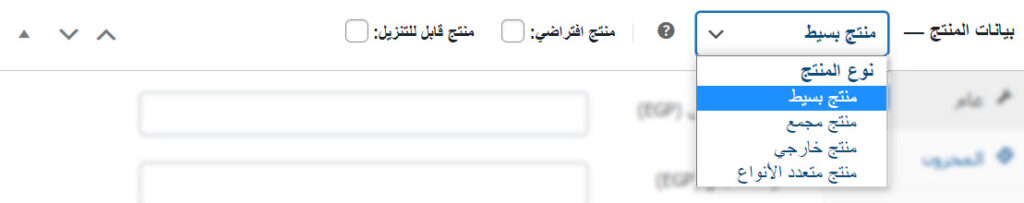 في القائمة المنسدلة الخاصة بنوع المنتج هناك 4 أنواع من المنتجات، ويمكن اختيار واحد منها فقط. هذه الأنواع هي: