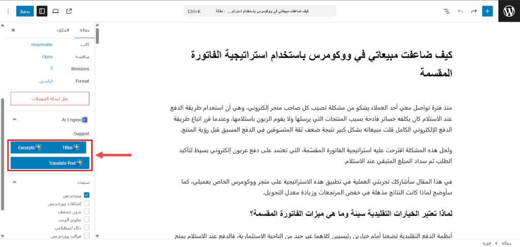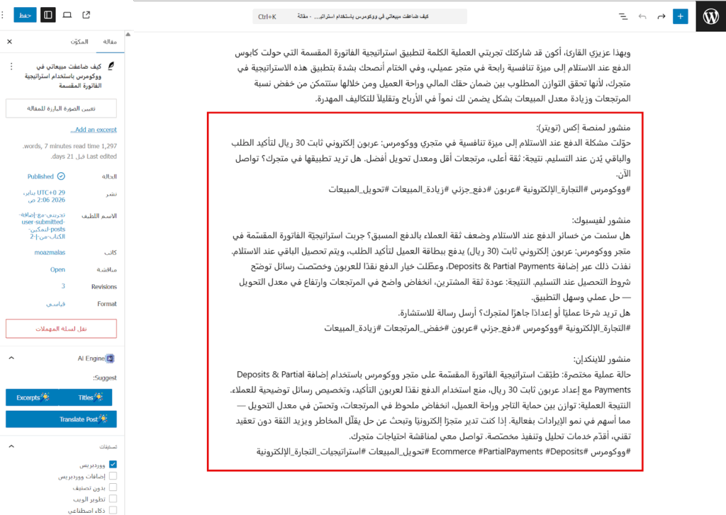 كيف استخدمت المساعد الذكي داخل ووردبريس لكتابة منشورات السوشيال ميديا؟