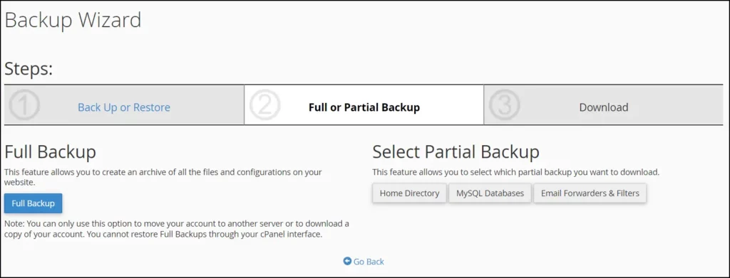 إذا توجهت إلى Backup في الصورة السابقة ستتمكن من تحميل نسخة احتياطية كاملة لكي شيء في موقعك.