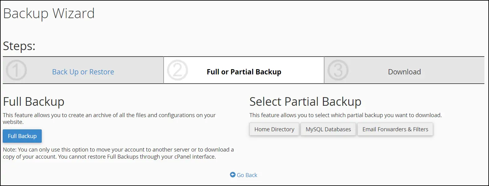 هذه الطريقة صالحة لكل أنواع المواقع بما فيهم ووردبريس. مميزات هذه الطريقة أنها مضمنة بشكل مجاني مع الاستضافة الخاصة بك، وتمكنك من نسخ الموقع بالكامل. لكن عيوبها أكثر للأسباب التالية:
