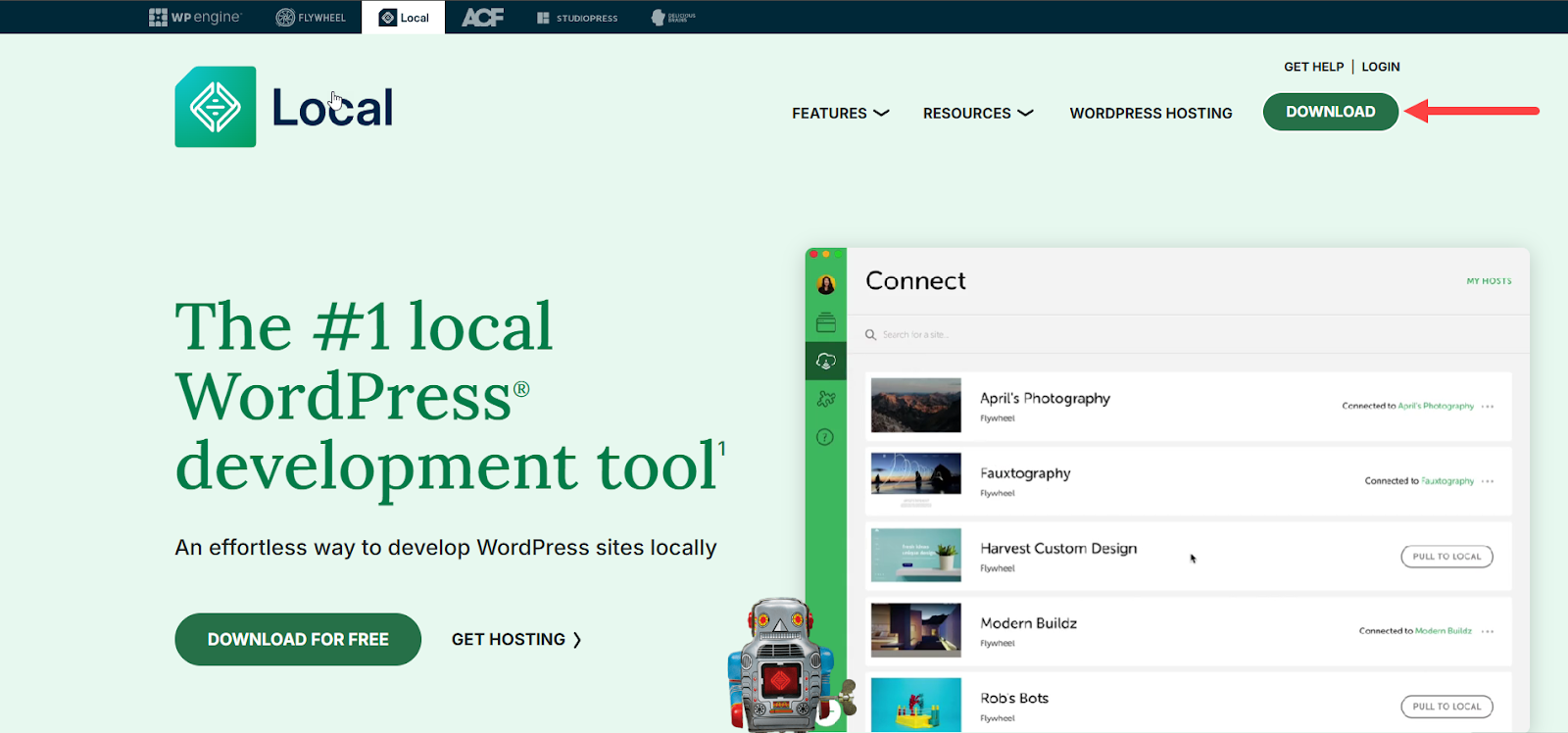 بداية نزلت برنامج local من خلال التوجه إلى موقعه الرسمي والنقر على زر (DOWNLOAD) في أعلى يمين الصفحة الرئيسية ومن ثم ثبتته على حاسوبي الشخصي.