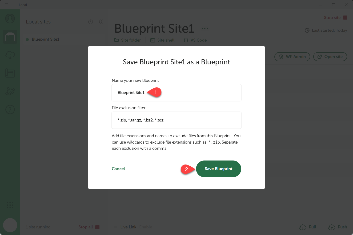 الخطوة الخامسة: حفظ قالب ووردبريس المسبق باستخدام ميزة Local Blueprint