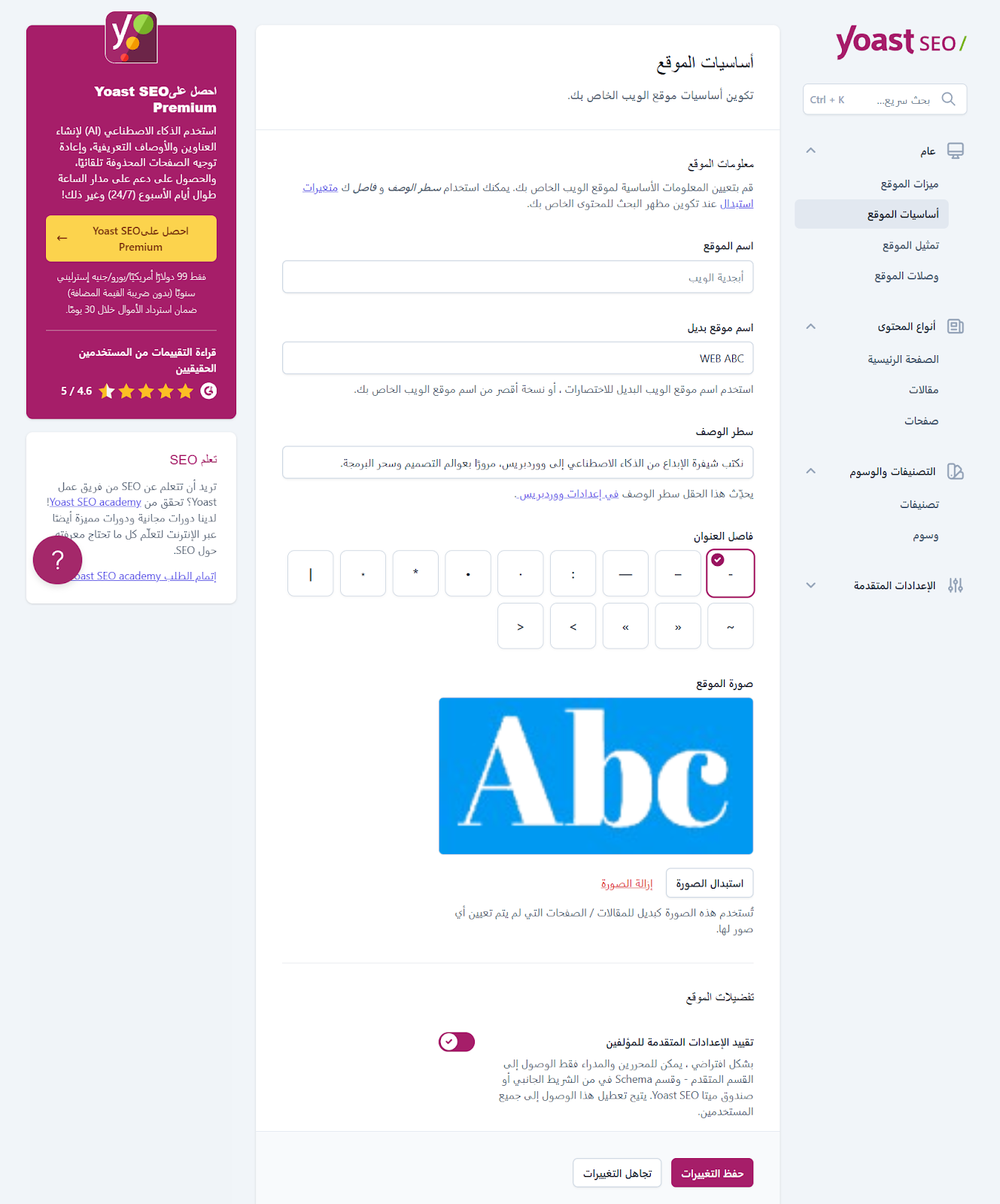 1. ضبط الإعدادات الأساسية الخاصة بالموقع