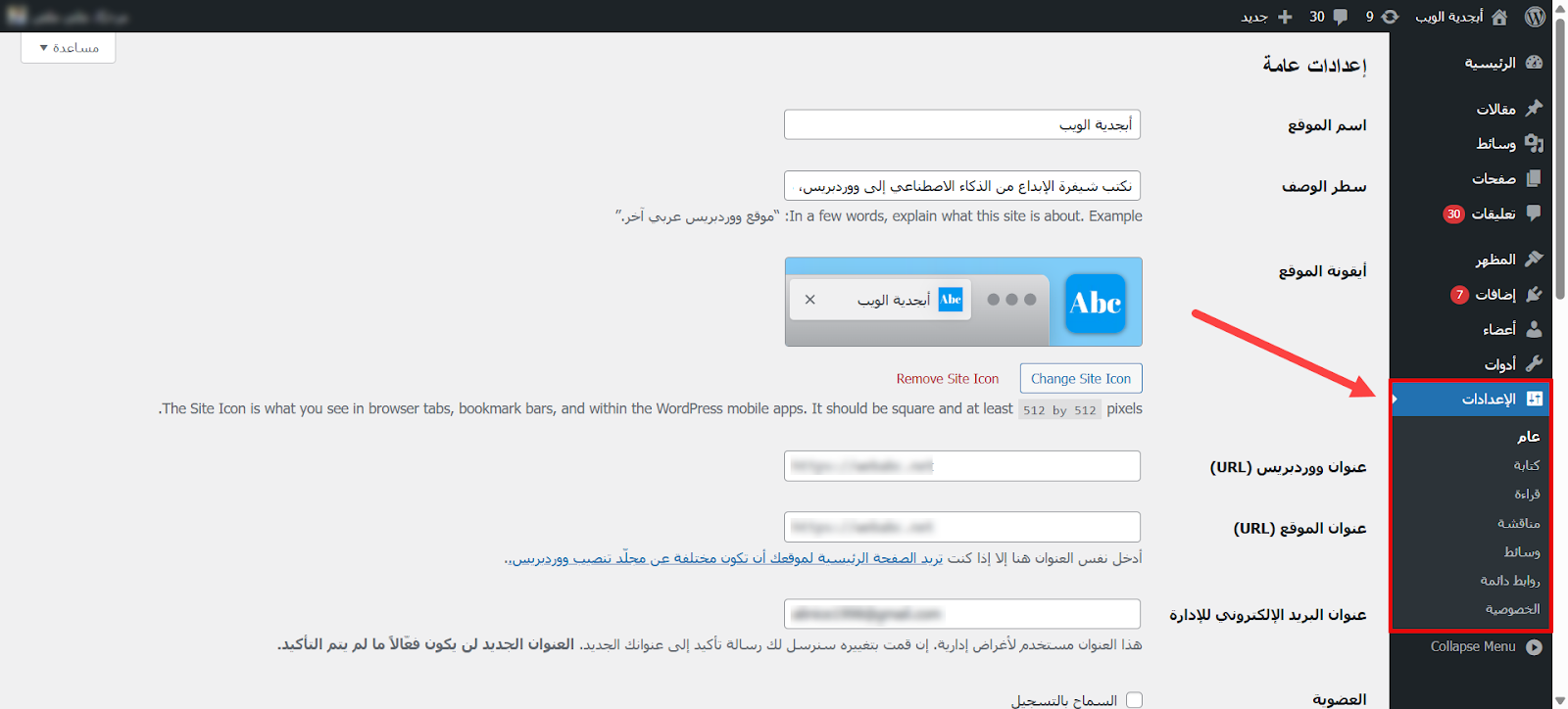 وكنت قد شرحت جميع هذه الإعدادات ووظيفة كل منها في مقالة سابقة بعنوان (أهم الإعدادات التي يجب ضبطها في موقع الووردبريس بعد إنشائه)، يمكنك الاطلاع عليها والتعرف على جميع الإعدادات في الموقع.