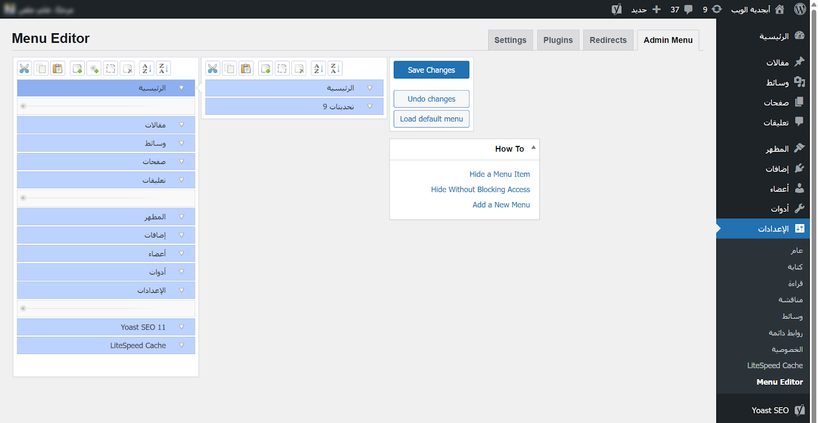 بعد أن انتهي من ضبط الإعدادات التقنية، أنتقل إلى تخصيص لوحة تحكم الموقع من أجل أن أسهل عملية إدارة الموقع على عميلي، فتسليم لوحة التحكم كما هي من شأنه أن يربك العميل ويدفعه لارتكاب أخطاء غير مقصودة تؤدي إلى تعطيل الموقع خاصة إذا كان العميل لا يمتلك خبرة تقنية كافية.