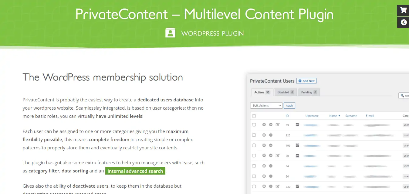 تستطيع هذه الإضافة تحويل موقع الووردبريس الخاص بك إلى موقع عضوية مميز، ويمكنها تقييد المحتوى، كما يعتبرها البعض الإضافة الأصلية للعضوية في ووردبريس، وقد تم تثبيتها حتى الآن على أكثر من 80 ألف موقع وآخر تحديث لها كان منذ ثلاثة أيام فقط وقت كتابة هذا المقال، ومن أهم ميزاتها ما يلي: