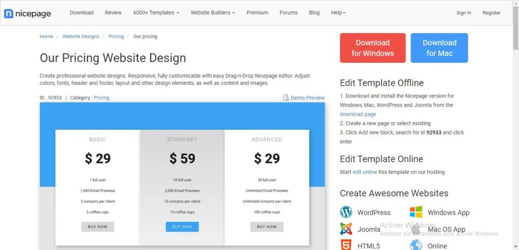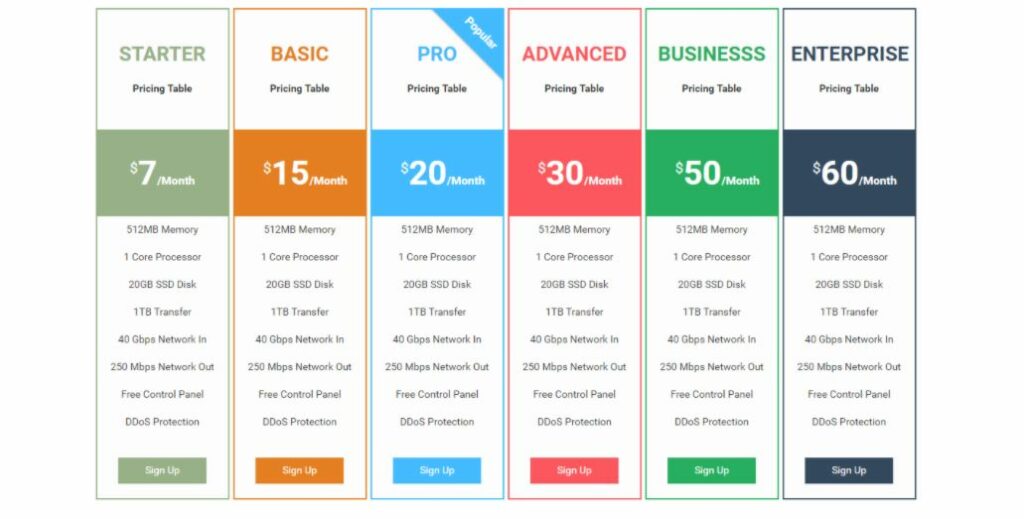 - جداول تسعير مميزة تساعدك على اختيار العنوان المناسب بشكل جميل، ووضع علامات الأسعار بشكل جذّاب، وكذا خانة الطّلب، والدّفع بالنّسبة للعملاء.
