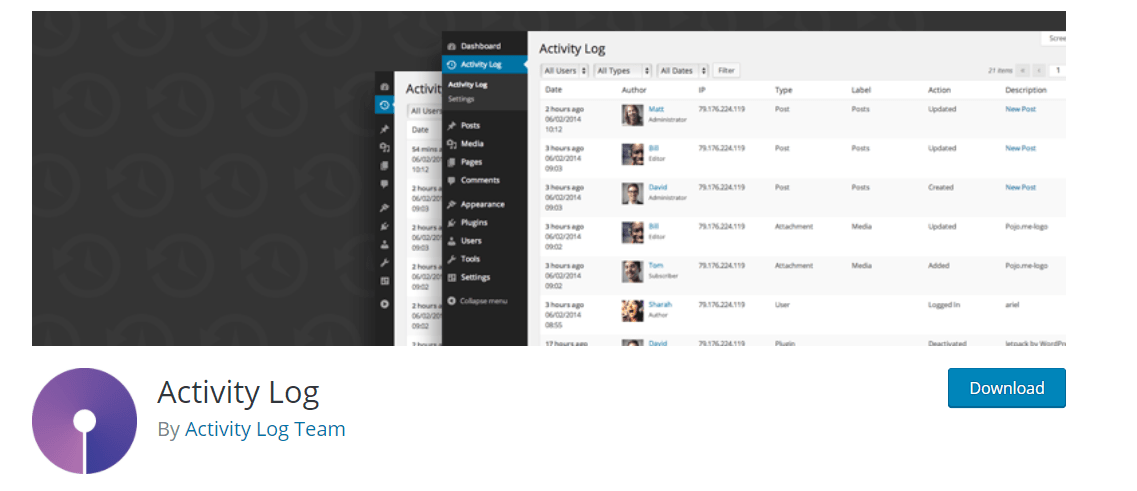 يُمكن لإضافة مثل WP Activity Log أو Activity Log أن تريكَ نشاط المساهمين معكَ في الموقع، ومعرفة محاولاتهم لتثبيت أو حذف أي شيء ليس من المفترض الوصول إليه مما يساعدك على حماية موقع ووردبريس من هجمات الاختراق الداخلية!