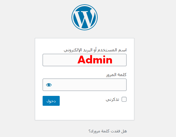 حينما تزور صفحة الدخول إلى موقع ووردبريس، يُطلب منك اسم المستخدم أو البريد الإلكتروني، بالإضافة إلى كلمة السر طبعًا (كما هو واضح في الصورة السابقة). وهنا أنصحك باستخدام البريد وليس اسم المستخدم الذي يمكن التنبؤ به بسهولة وبالتالي سهولة اختراق موقع ووردبريس الخاص بك.