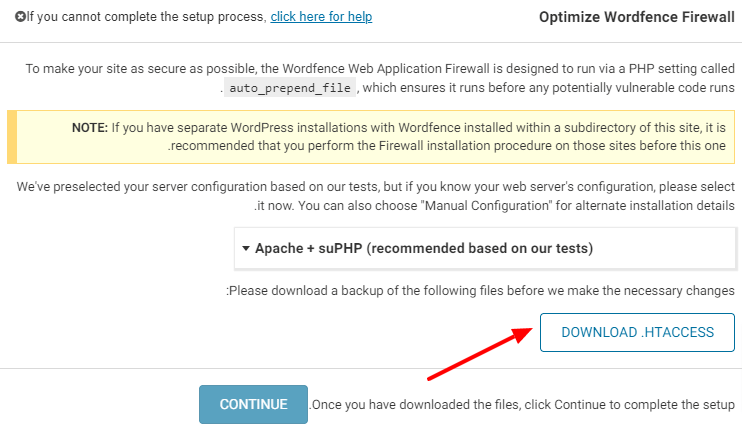قد تنبثق لك شاشة تفعيل جدار الحماية بمجرد تفعيل الإضافة، وكل ما عليك فعله أن تقوم بالموافقة على تحميل ملفات htaccess كما في الصورة: