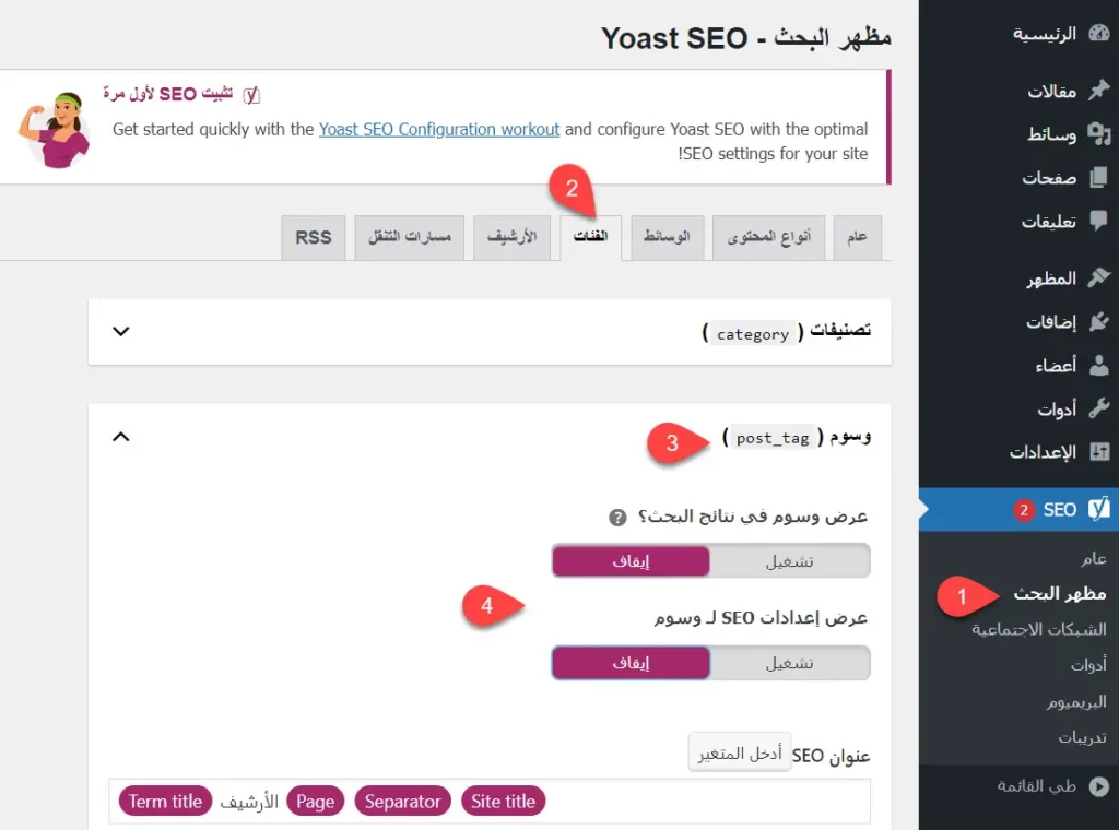 ويمكن عمل ذلك في إضافة Yoast SEO في حالة أنك تستخدمها، وذلك باتباع الخطوات التالية: