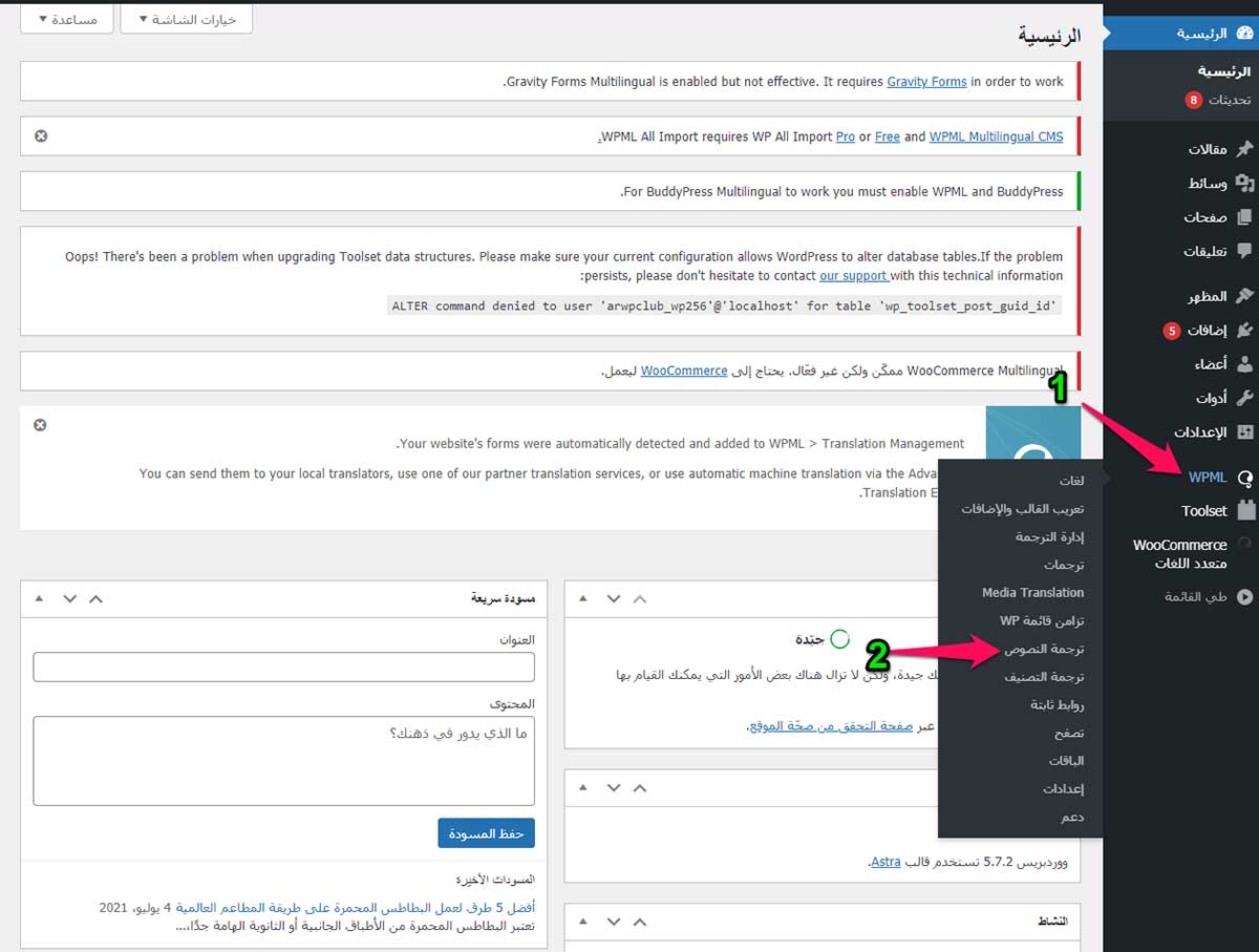 ترجمة النصوص بواسطة إضافة WPML String Translation
