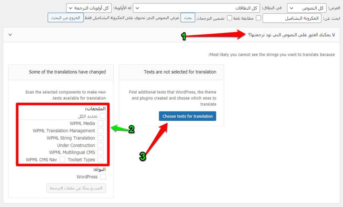 ماذا لو لم تجد النص الذي تريد ترجمته بواسطة إضافة WPML String Translation