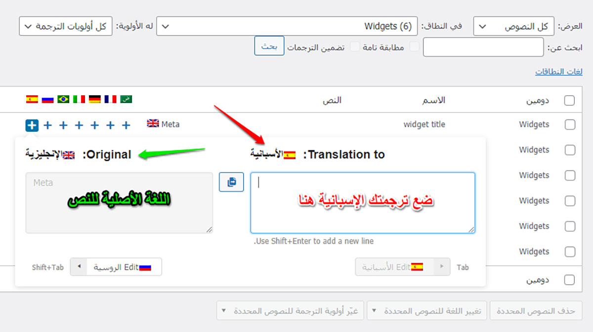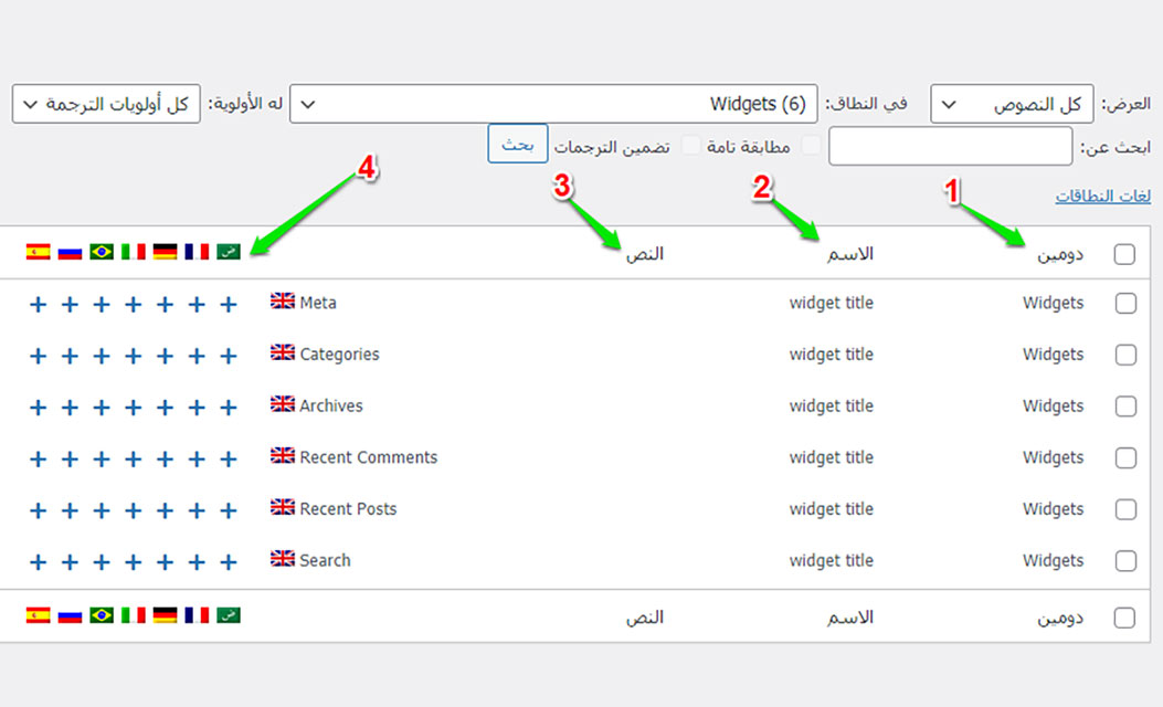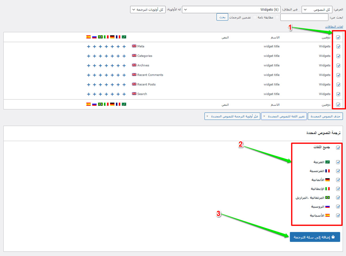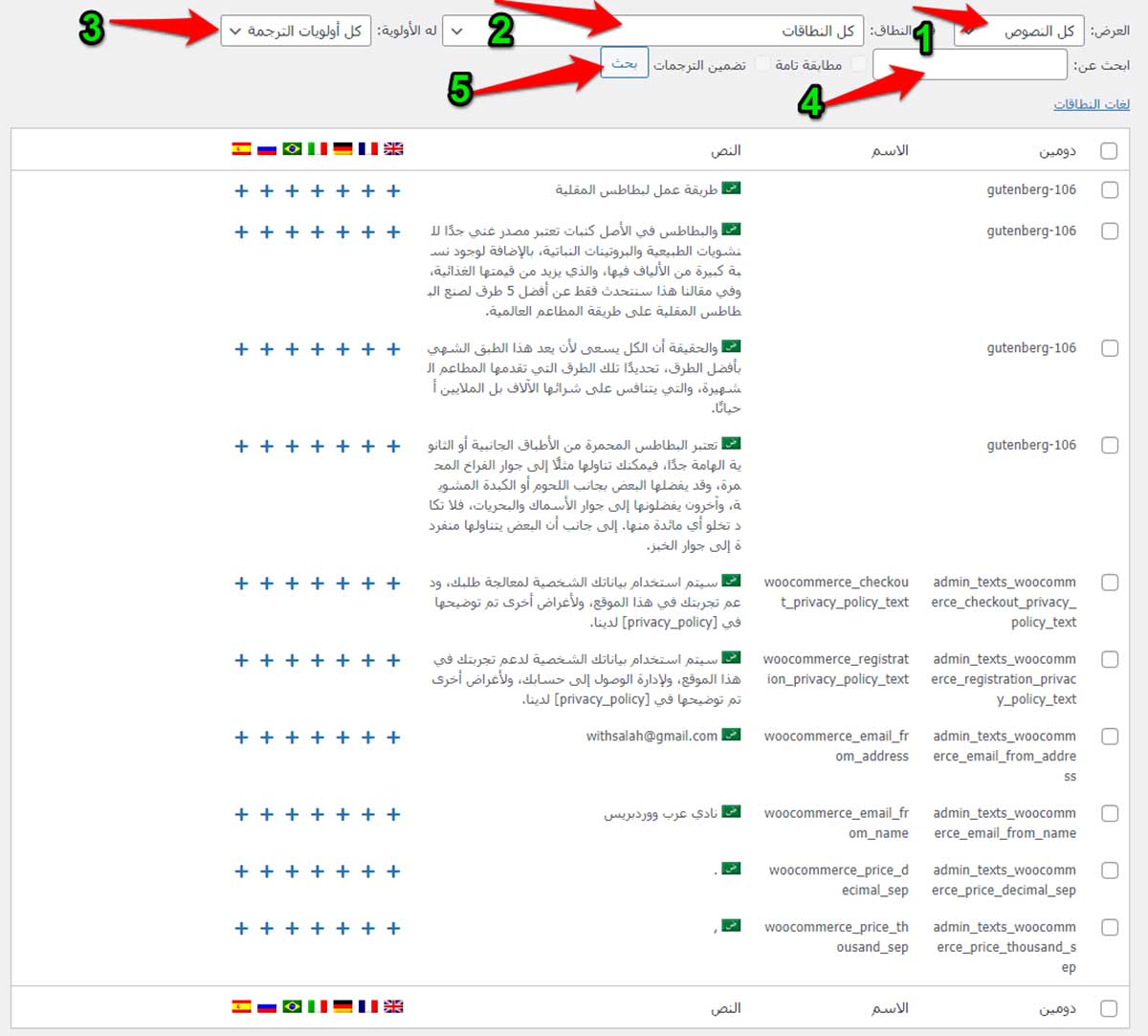 1- ترجمة النصوص مباشرة داخل جداول إضافة WPML String Translation